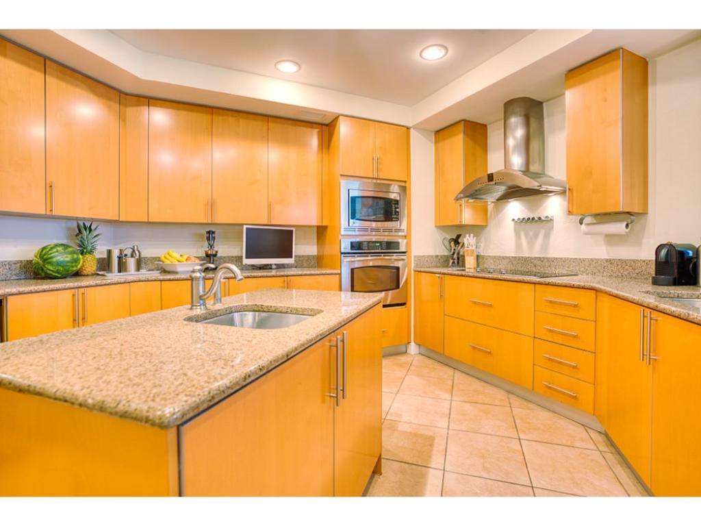 ~ Gourmet Kitchen: Italian cabinetry, stainless steel appliances, granite countertops, fully stocked with cookware, dishware, silverware, and small kitchen appliances.