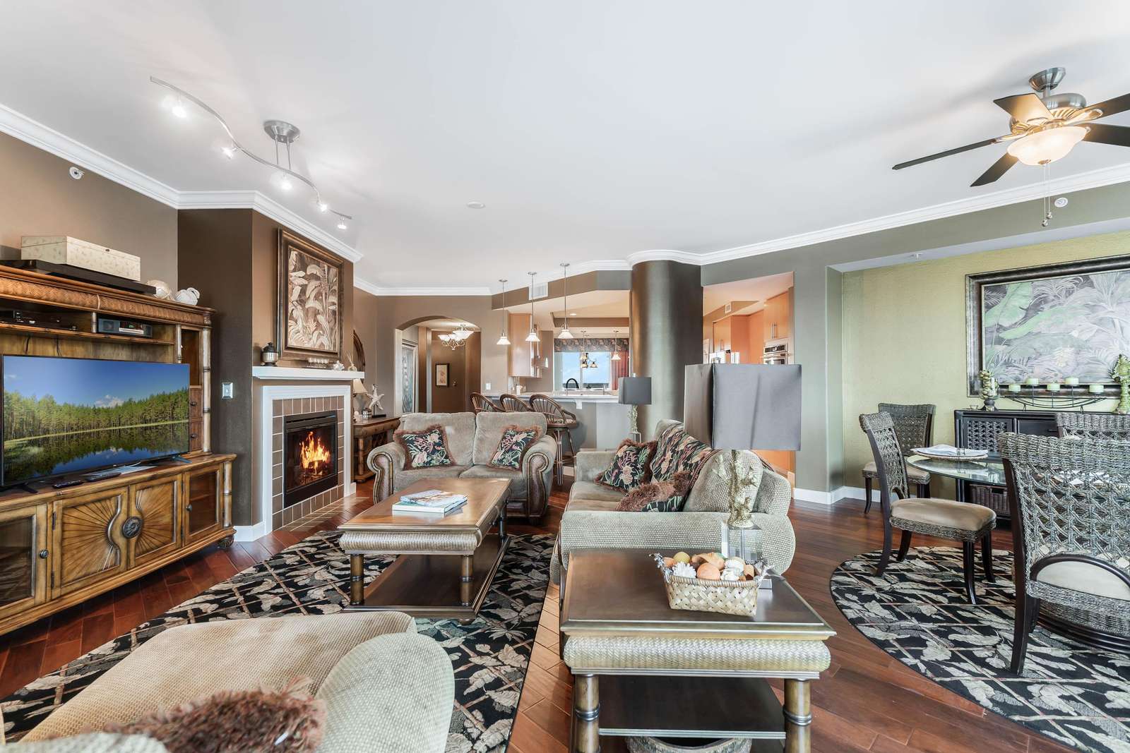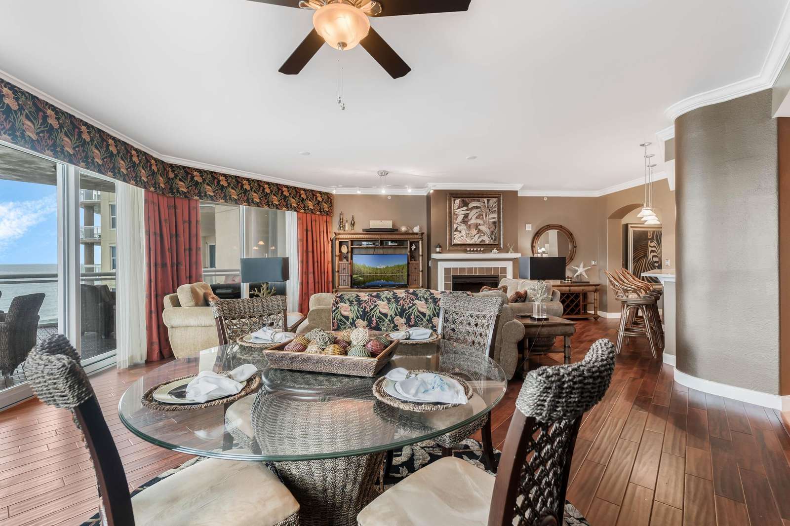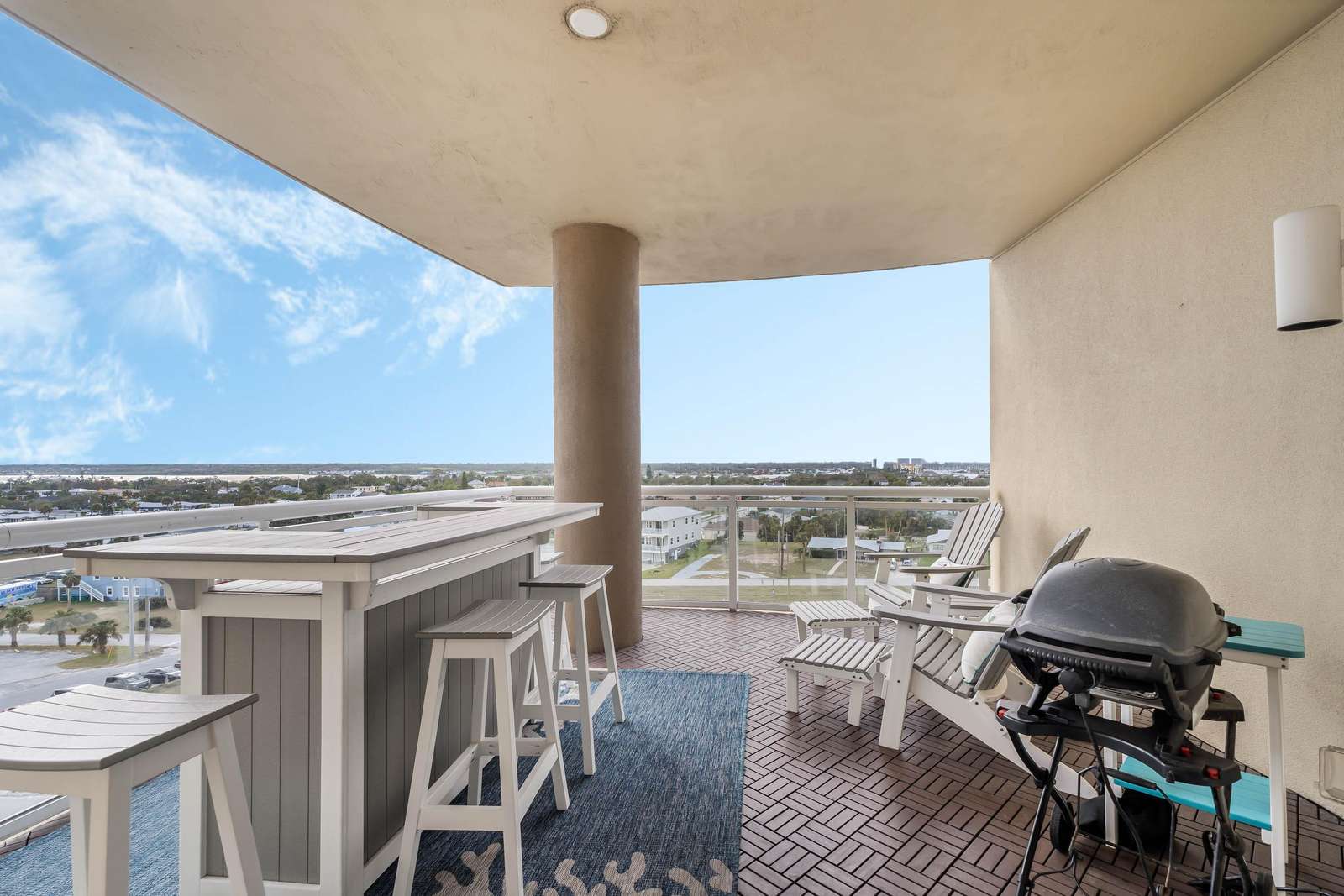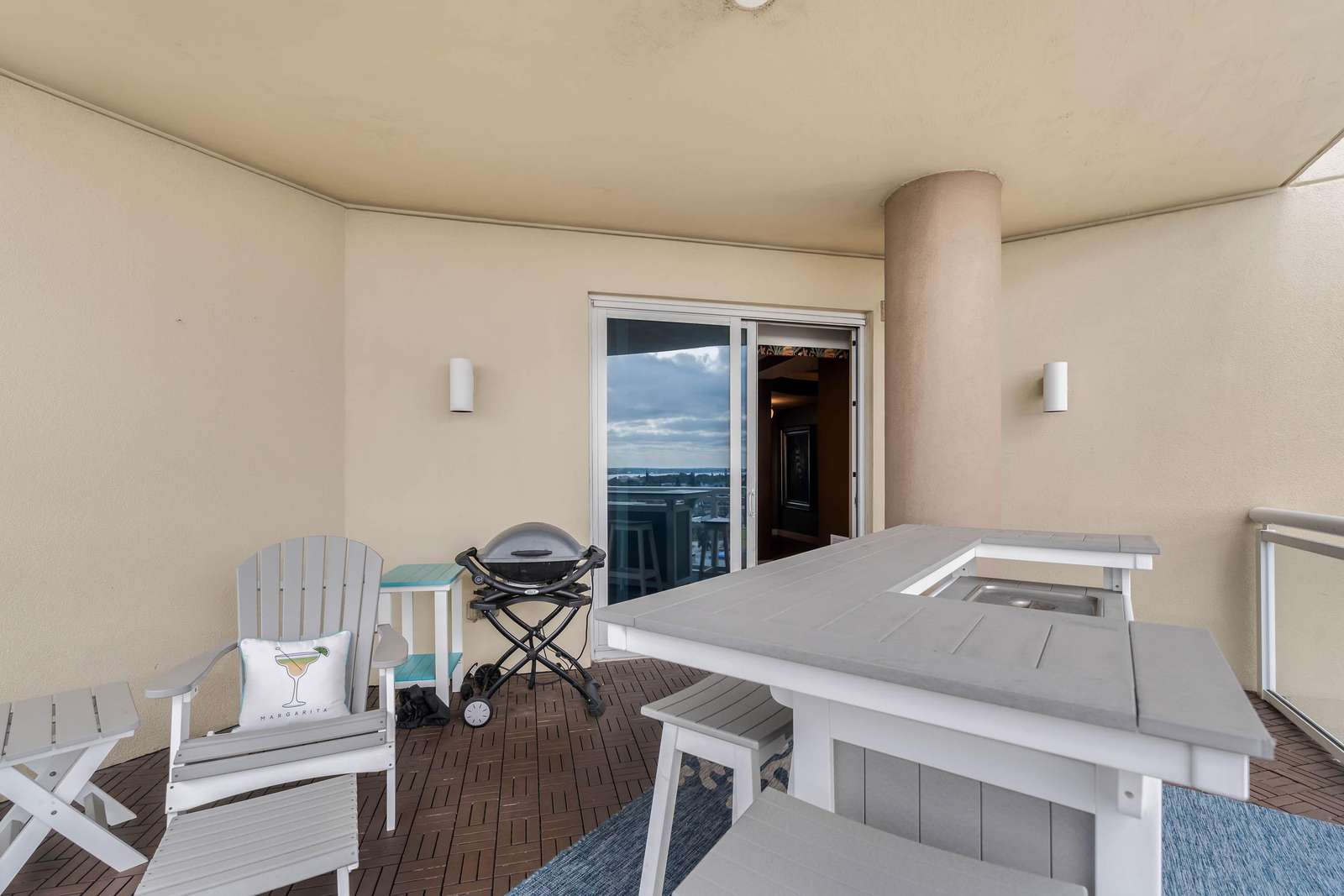 Out on the ocean-view balcony is a small dining set as well as additional outdoor furniture seating for the whole family. On the sunset balcony is a Elite Fyre electric grill, A Polywood bar with seating for four and two Polywood Adirondack chairs set up to enjoy the beautiful Florida sunset with the international speedway / river back drop.