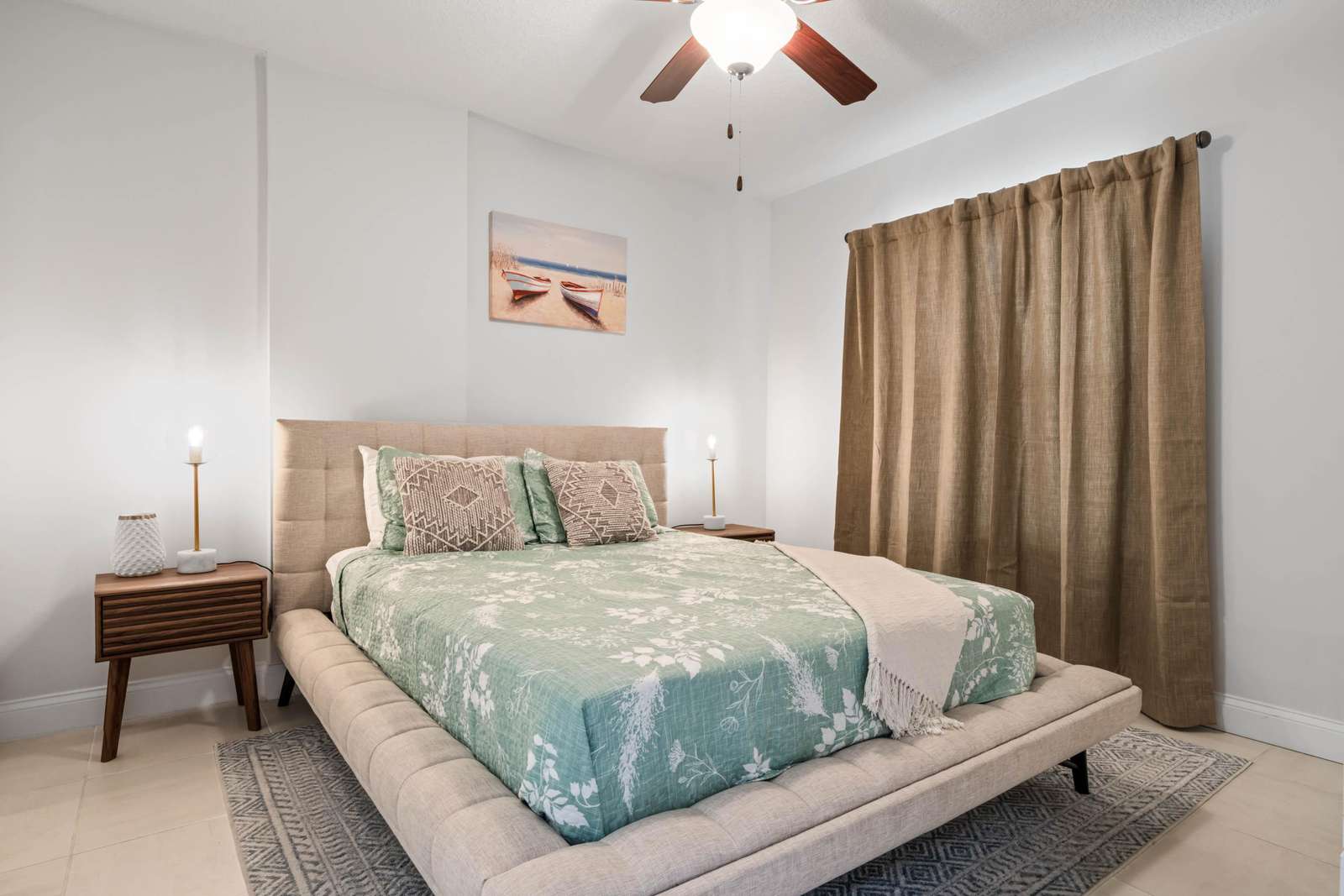 ~ Master Suite: King bed with his-and-hers nightstands, Smart TV, walk-in closet, and a private bathroom for added comfort.